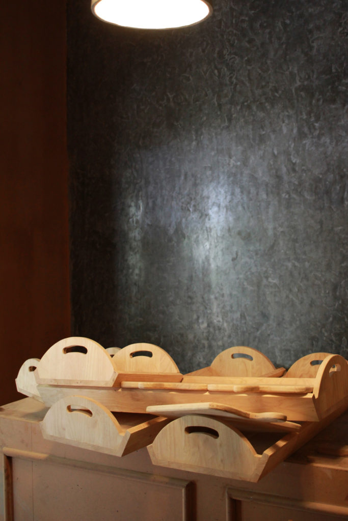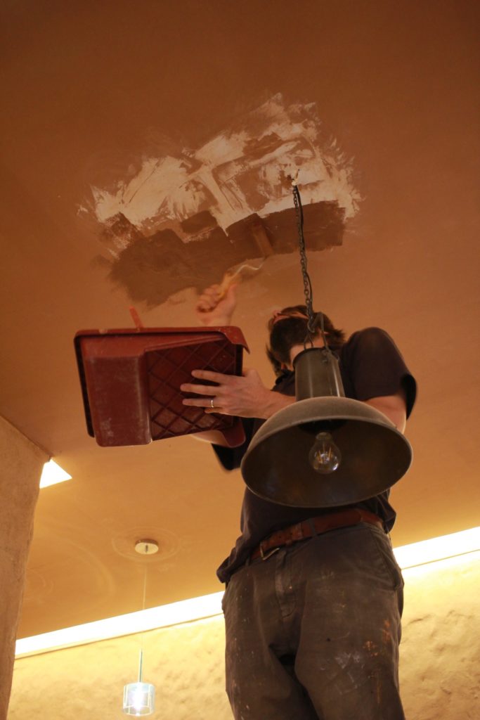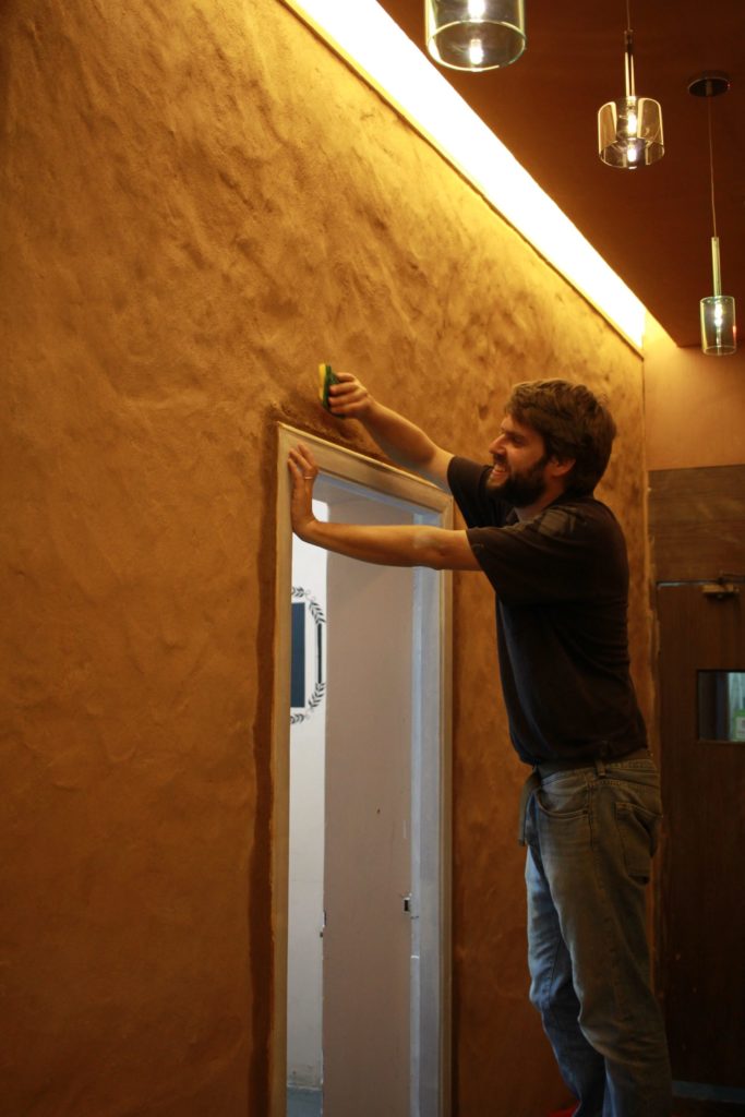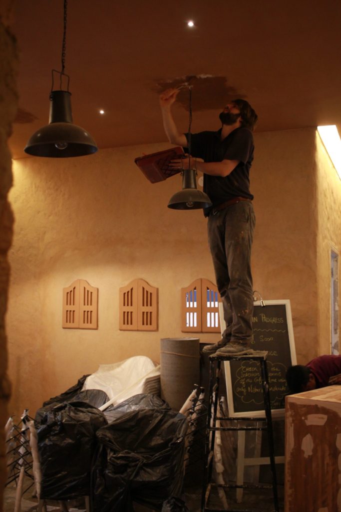 The transformative power of natural plasters soon became evident, even to us! The glow of the earth lime plaster was to soon cover the whole interior of the restaurant rendering it a warm and cozy space for a hearty dinner.