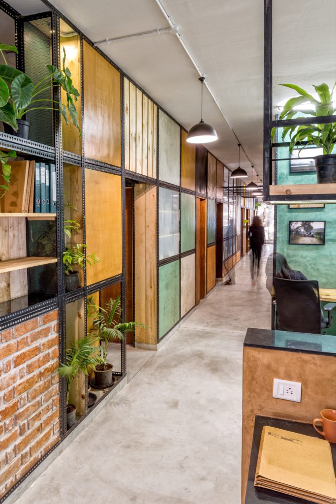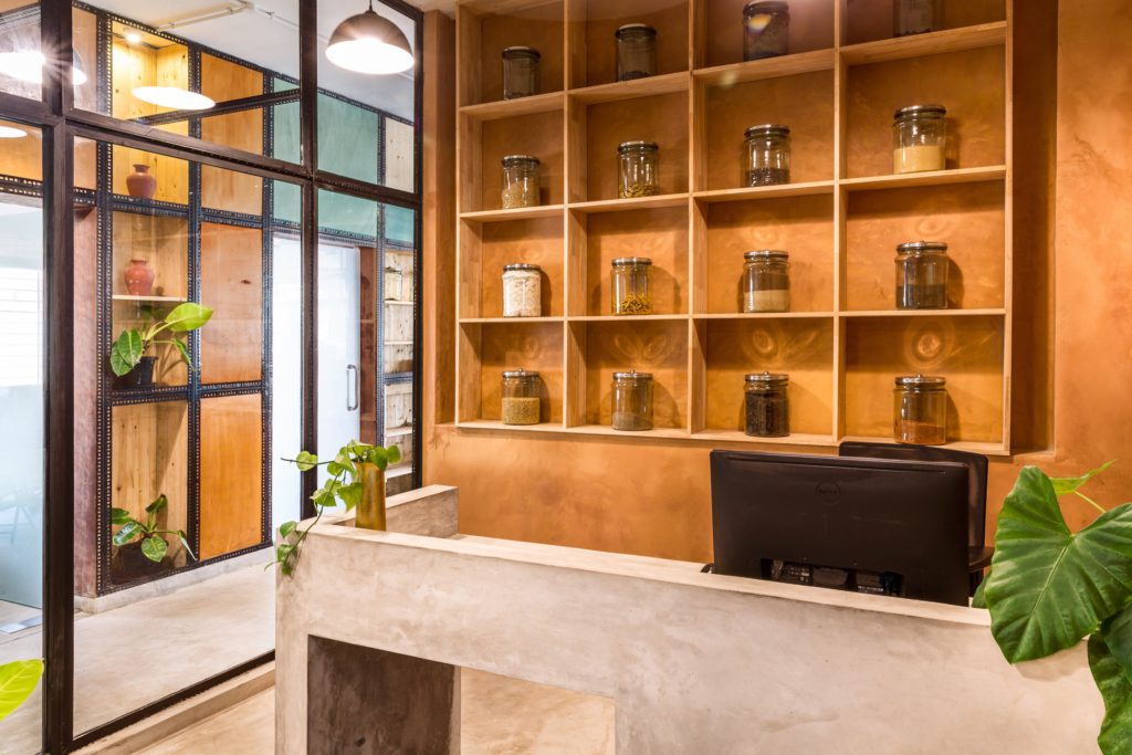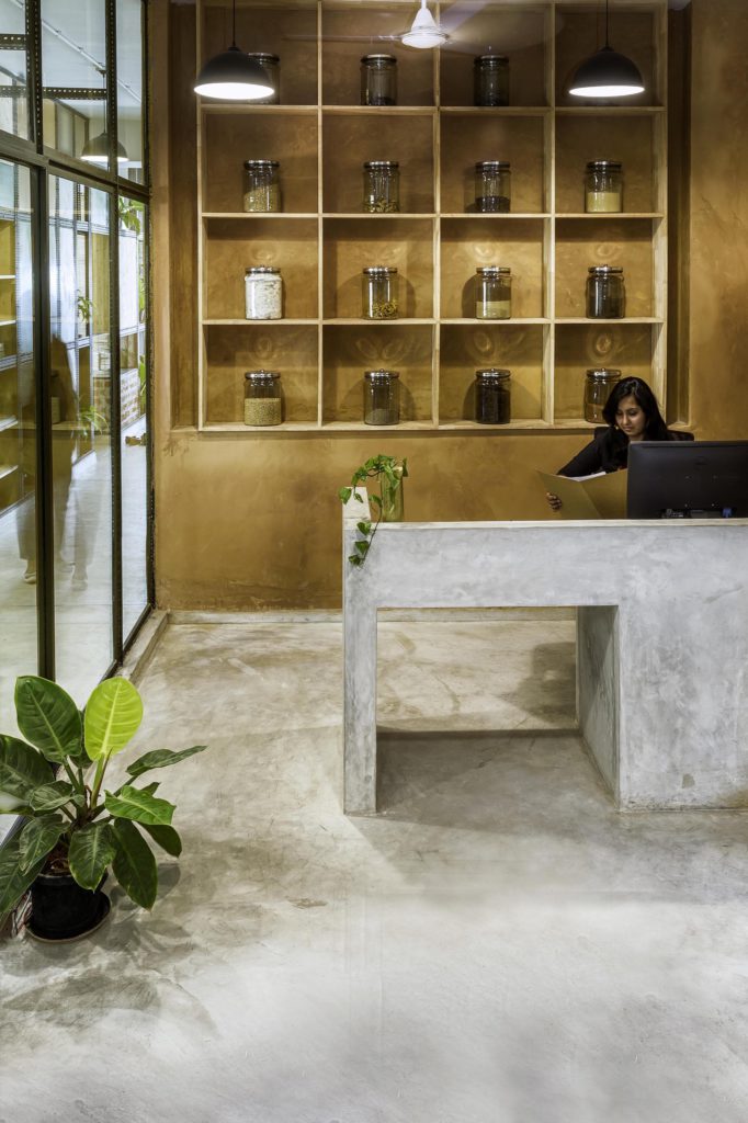 A choreography of natural materials for the workspace of the administration wing of Aditi Organics.