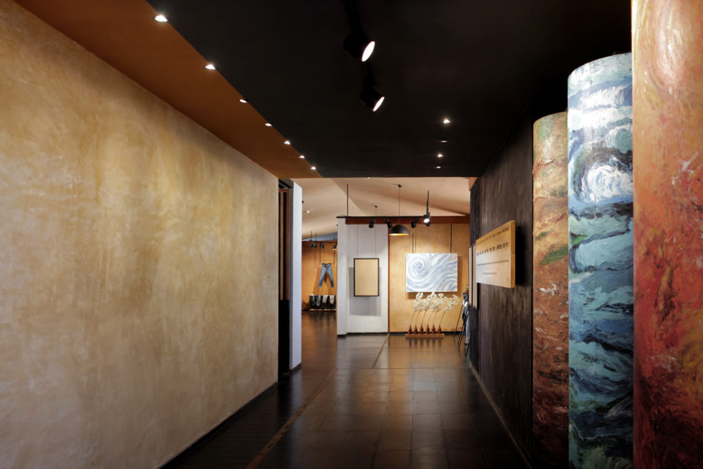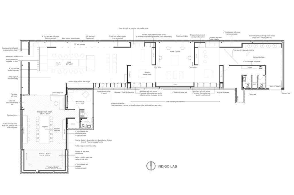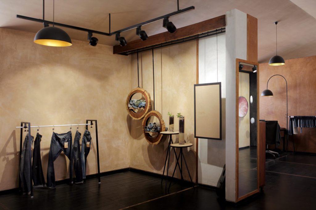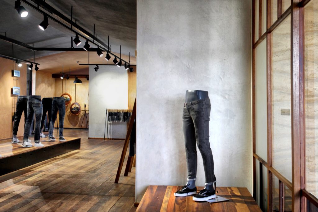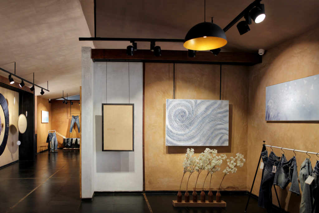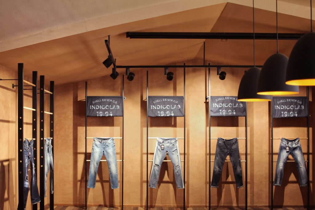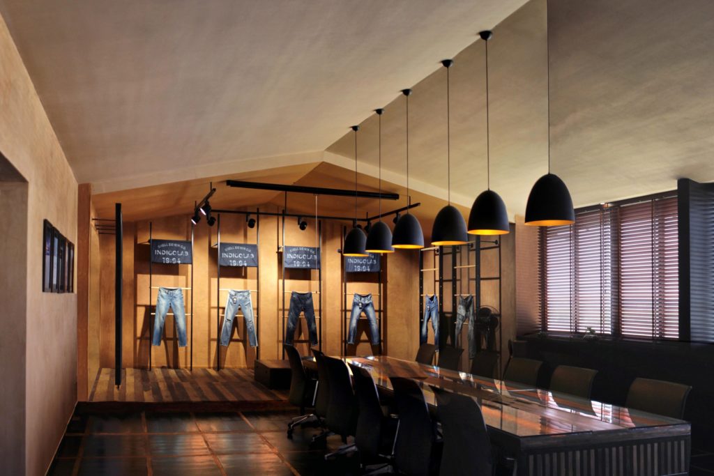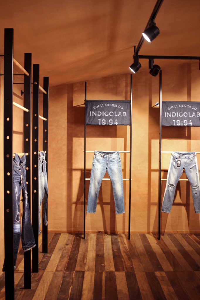The interiors of Indigo Lab are an outcome of the study and reinterpretation of traditional building materials and techniques. We hope this customised palette creates a neutral setting in which the classic denim is reinterpreted, rethought, and innovated.
