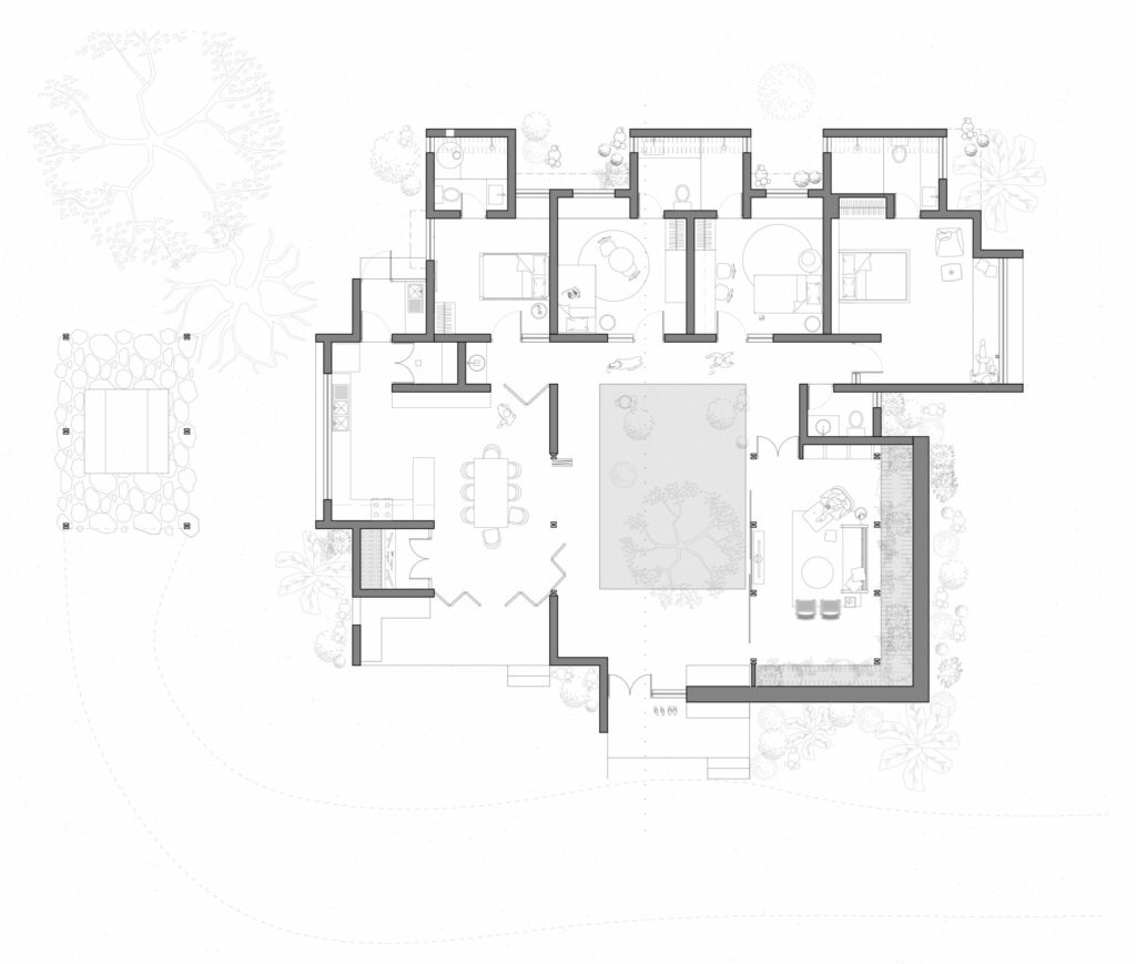 Materials & Techniques : Compressed Stablisied Earth Blocks (CSEB), Natural Lime Plasters, Pigmented concrete, Polished Oxide Flooring (IPS), Reclaimed Wood.